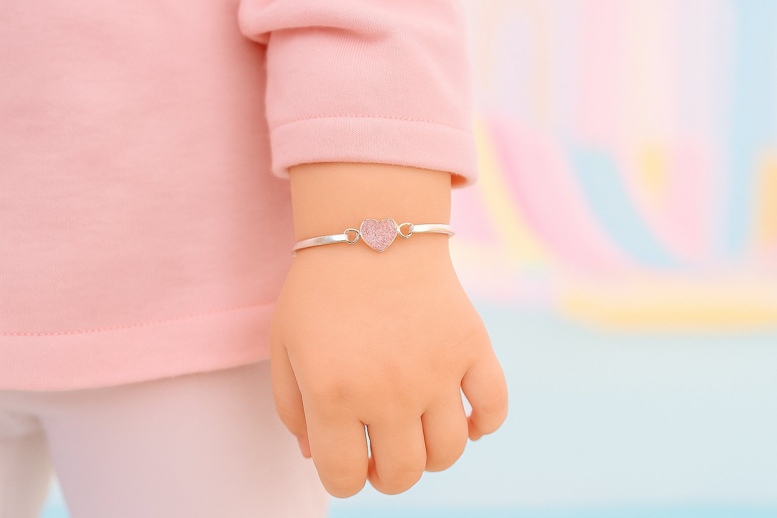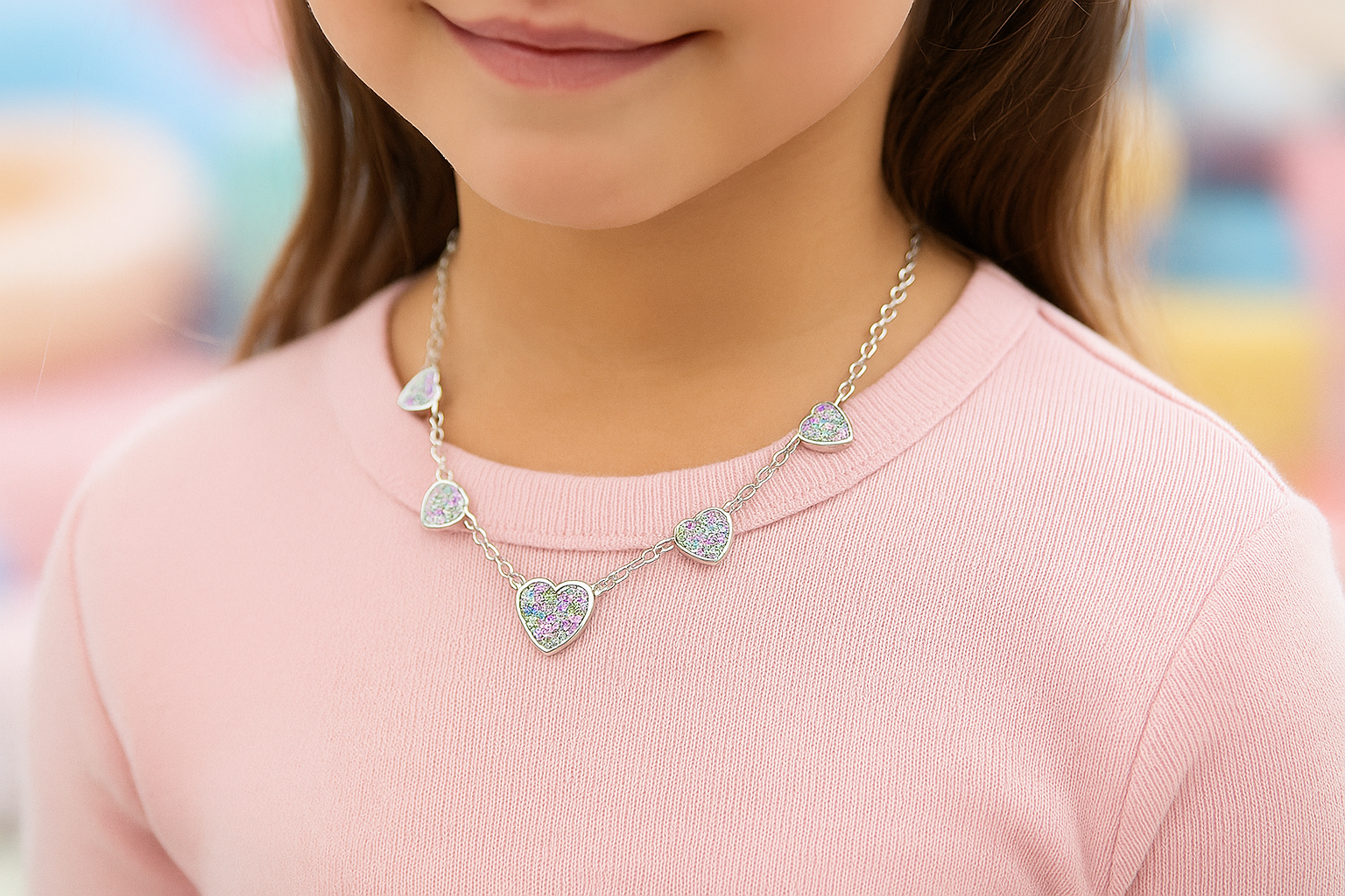 Heart Pink Crystal White Gold Palladium Plating Hypoallergenic Kids Necklace