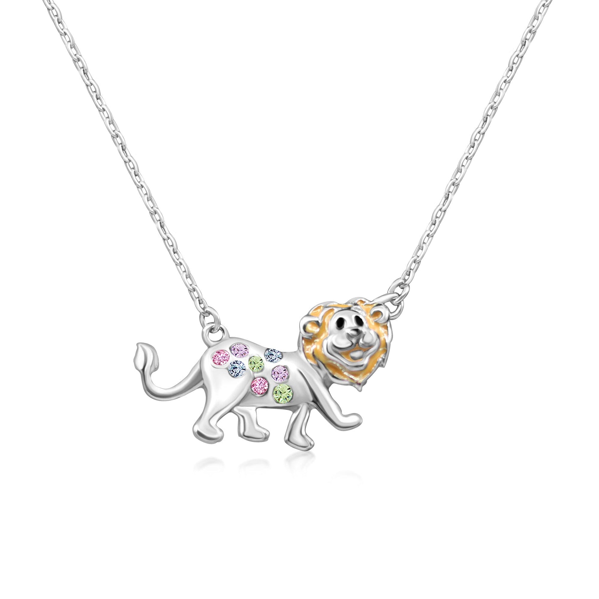 Lion Multi-color Crystal White Gold Palladium Plating Hypoallergenic Kids Necklace