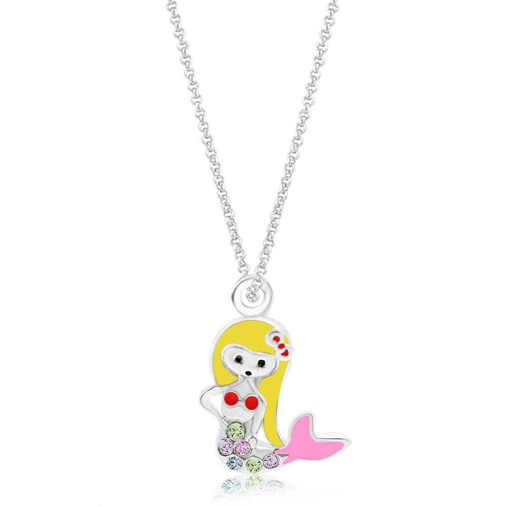 Mermaid Enamel Crystal White Gold Palladium Plating Hypoallergenic Kids Necklace