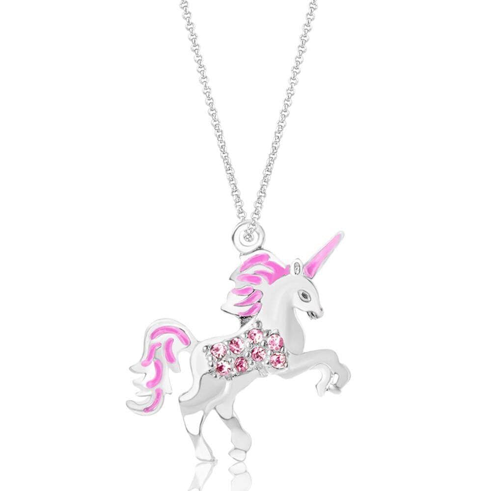This magical unicorn necklace brings wonder to any child's jewelry collection. Featuring a sparkling crystal pendant with white gold and palladium plating, it's hypoallergenic and safe for delicate skin. Parents can feel confident knowing every piece is crafted with non-toxic materials designed specifically for kids.