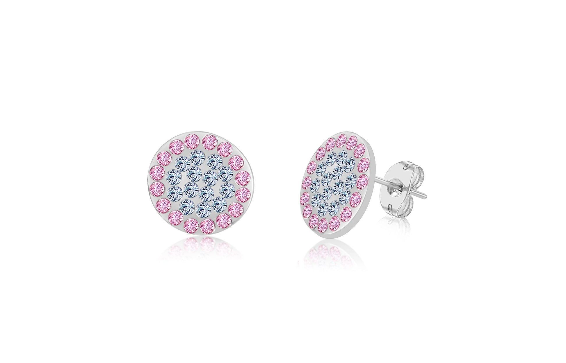 Circle Blue Pink Crystal White Gold Plated Girl's Stud Earrings