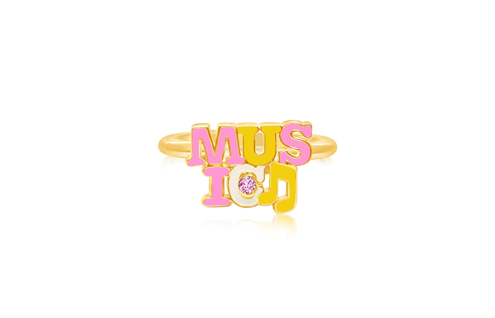 Music Yellow Pink Crystal Yellow Gold Plated Girl's Rings
