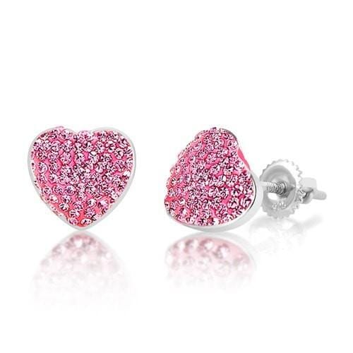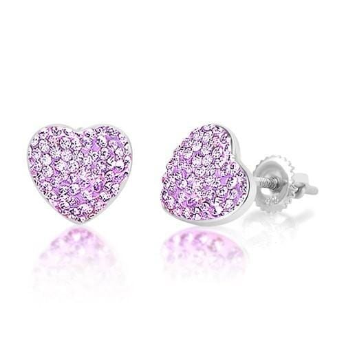 Heart Pink Purple Crystal Palladium Plating Girls Screwback Stud Earrings