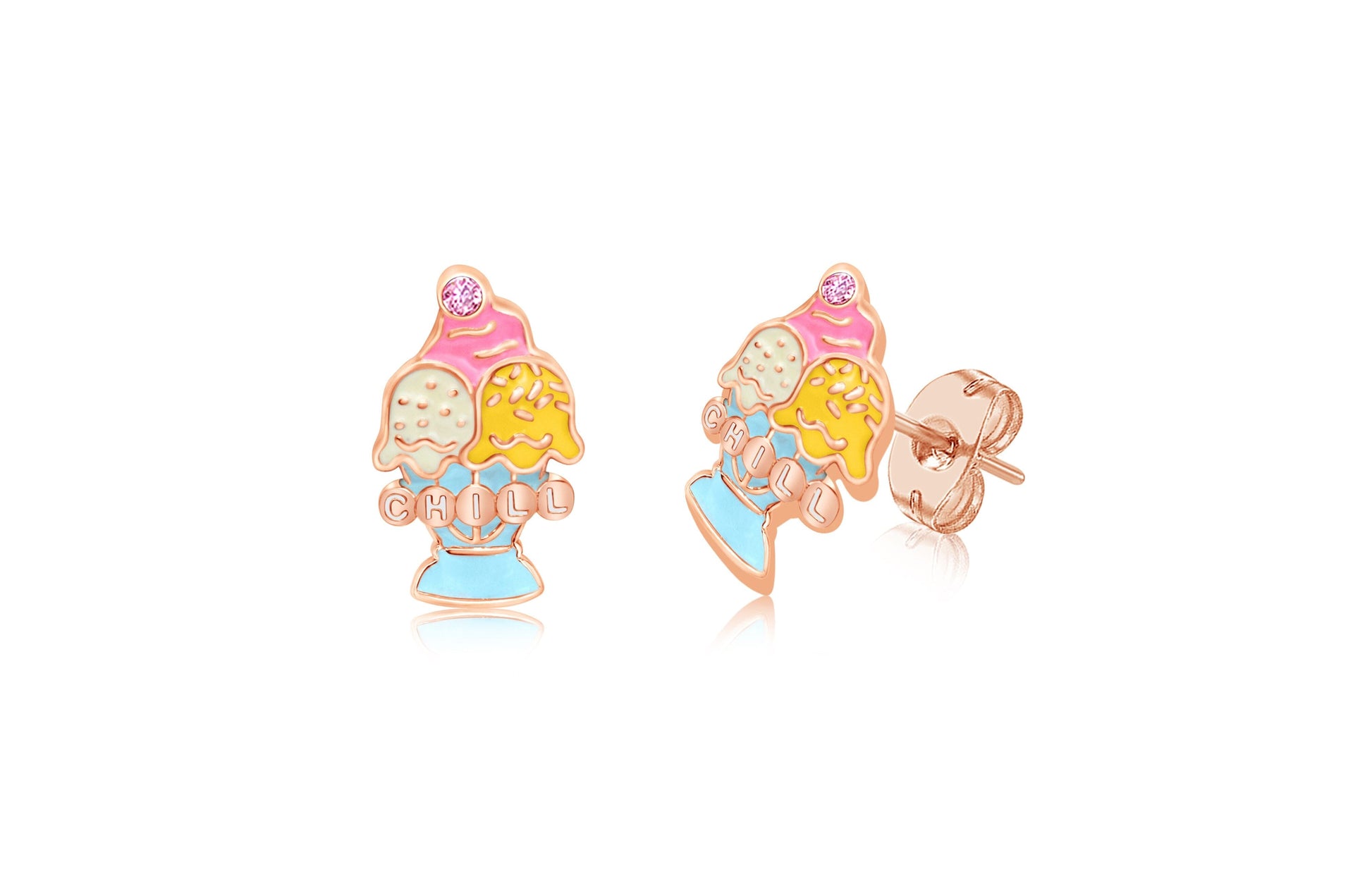 Ice cream Chill Crystal Enamel Rose Gold Plated Girl's Stud Earrings