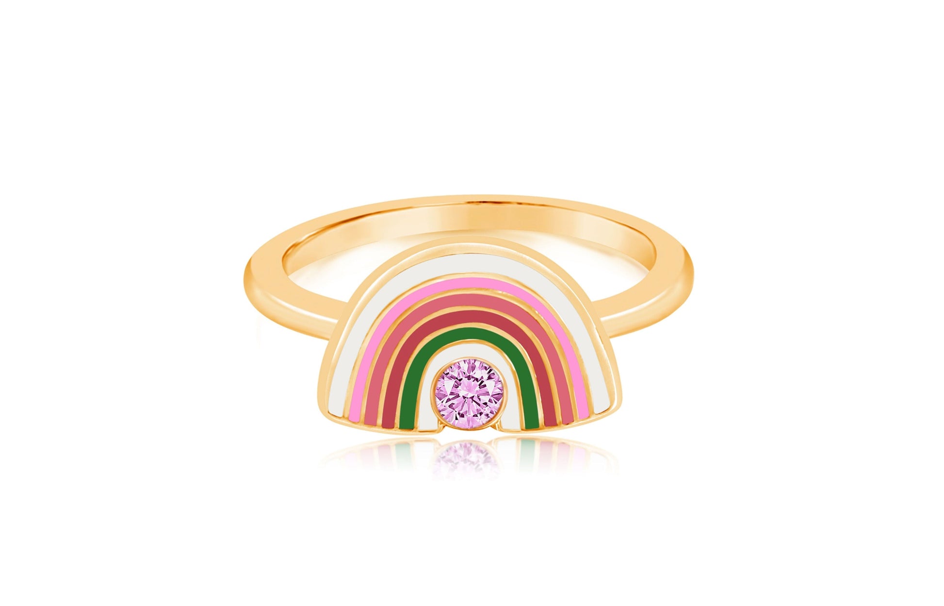 Rainbow pink Crystal Enamel Yellow Gold Plated Girl's Ring Size 4