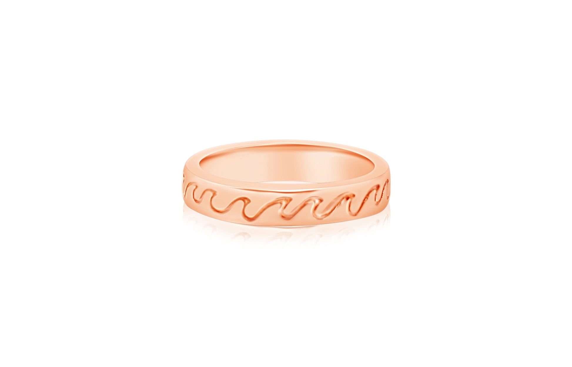Designed for young wearers, this rose gold ring combines beauty with safety. Its elegant wave engraving catches the light beautifully, while non-toxic construction means parents can feel good about every wear.